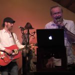 Es ist wieder einmal ein guter Wirtshausgott, der diesen Abend in Zwerndorf für die Vibes sorgt – das merkt wohl auch der gut gelaunte Fritz Ostermayer sehr bald: So mancher Freund, so mancher Fan, so mancher Interessierte oder Neugierige ist da in die Stube des Pepi Helm gekommen und gespannt und offen hört man sich den weiten/breiten Klangbogen an, den Fritz Ostermayer da in seinem Apfel mitgebracht hat (selbst eingespielt!!!) und welchen er mit seiner so genialen Radiostimme durchaus auch gefällig (wiewohl nicht wirklich göttlich) und jedenfalls beseelt besingt.